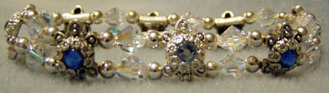 accented by the light sapphire Bicone stones. This can be made to size and is
