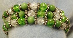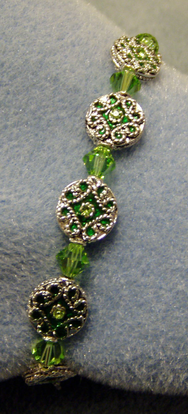 Peridot Cloisonné beads along with the peridot Bicone stones make this stretch