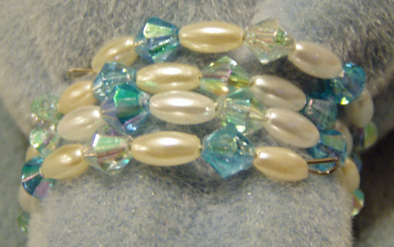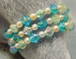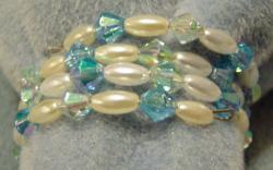 Pearl and crystal plastic beads on memory wire.
