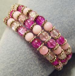Pink, dark pink, and crystal plastic beads on memory wire.