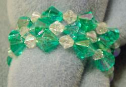 Green crystal plastic bicone beads on memory wire.