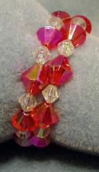 Red crystal plastic bicone beads on memory wire.