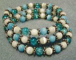 Glass turquoise stones and silver spacers on memory wire.