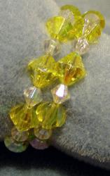 Yellow crystal plastic bicone beads on memory wire.